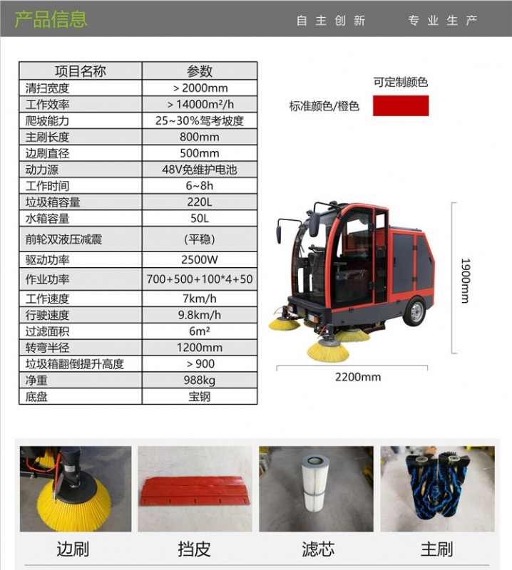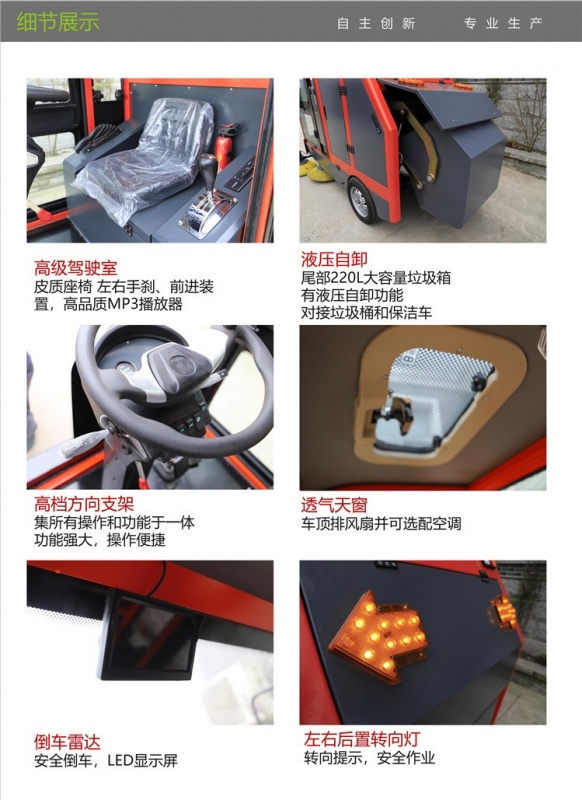 •采用汽车级手刹挂档,全新扫地模块化技术,汽车级线束,欧美电控。