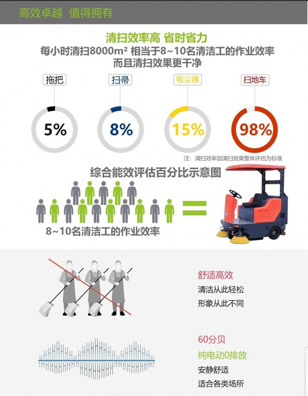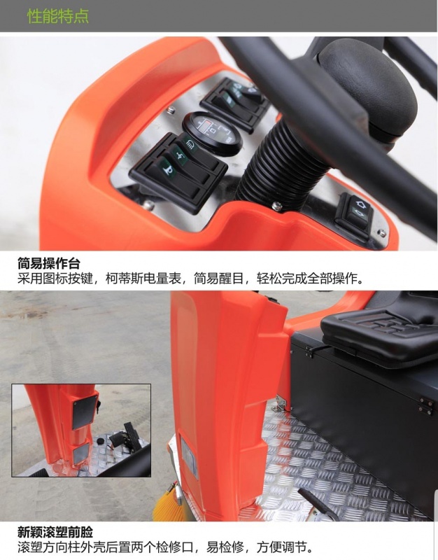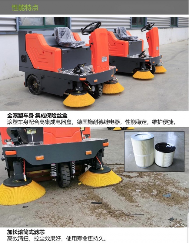 性能稳定,该电动扫地车清扫彻底,效率高,结实耐用,维护方便,扫地效果显著。
